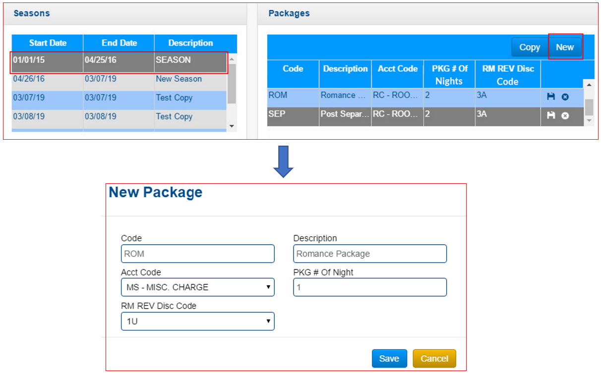 1. 1. 1. Seleccione la temporada en la parte superior izquierda para la que desea crear el paquete.