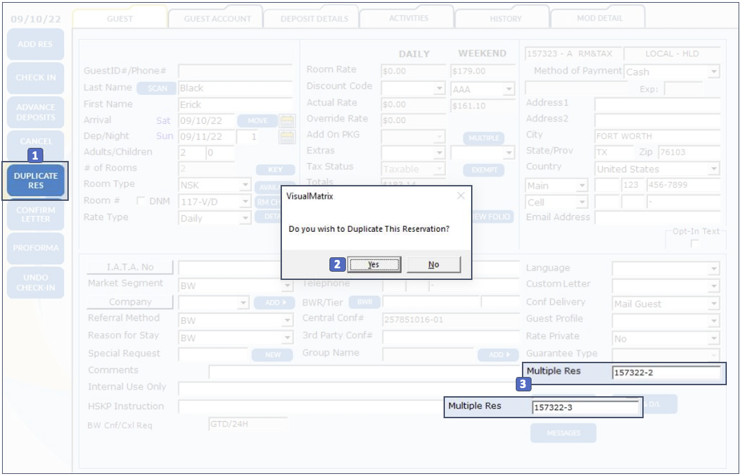 2. 2. 2. 2. Haga clic en Aceptar para confirmar la duplicación. La reserva original se cerrará y se abrirá la nueva reserva duplicada.