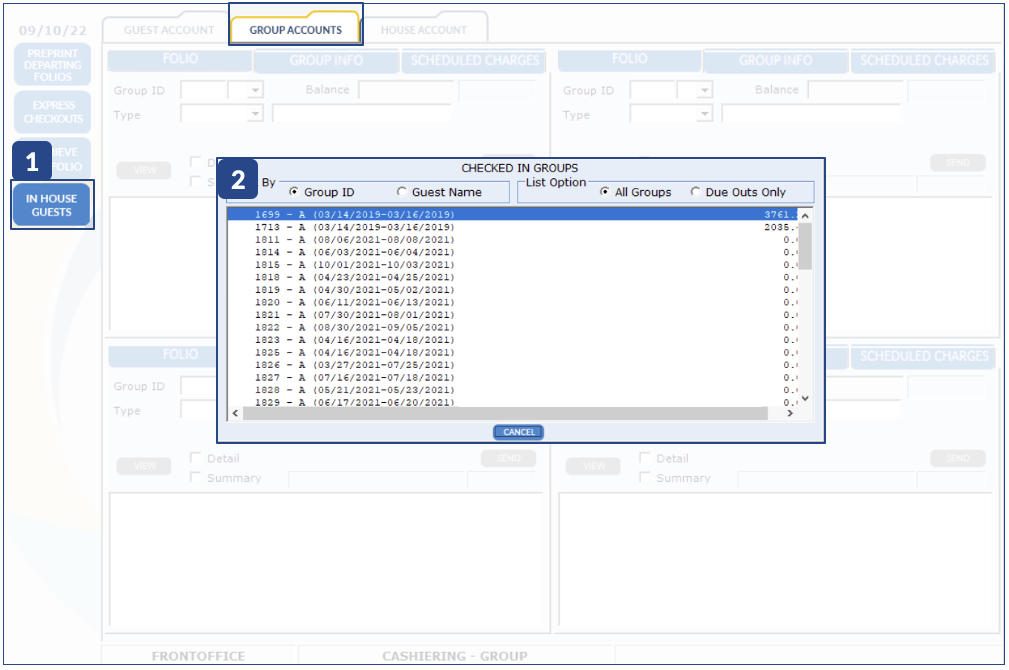 Camino:Front Office > Grupo > Grupo. La parte superior (1-3) de la pantalla del grupo tiene campos para obtener información grupal que rellenará al hacer un bloque de grupo. La parte inferior tiene una ventana de asignación de habitaciones donde ...