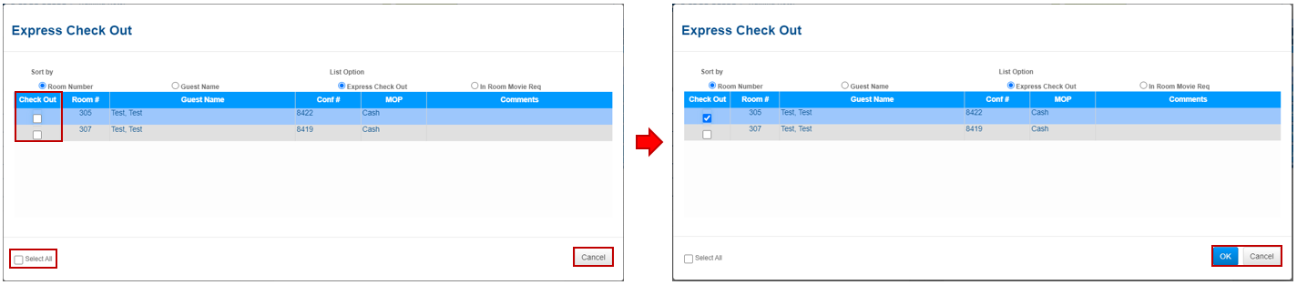 La función Express Check-Out está destinada a revisar a todos a la vez que se supone que debe revisar ese día. El saldo folio debe ser de $0.