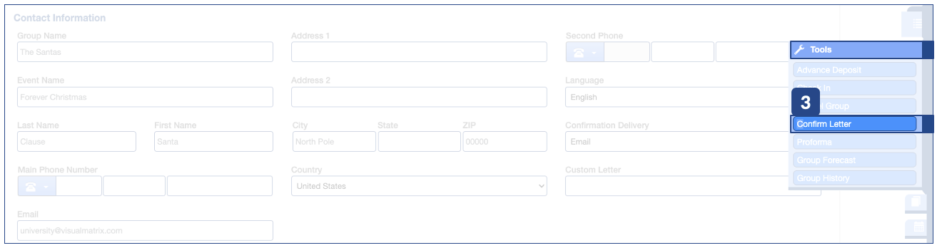 Para enviar una Confirmación de Cancelación, primero debe ser cancelada. Una vez cancelado, vaya a la caja de herramientas de la reserva y haga clic en Confirmar carta. Enviará el mensaje de cancelación establecido en Administración > Configuración ...