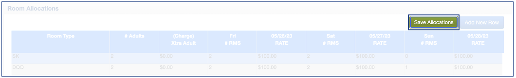 3. 3. 3. 3. Agregue tantas asignaciones para las fechas y tipos de habitaciones necesarias. Si hay otros tipos de habitaciones que no son necesarios, introduzca 0 en el número de asignaciones para esos. Hay que introducir un número. NO DELETO EL TIPO DE LA HABITACIÓN.