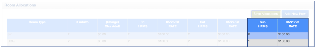 4. 4. 4. 4. Agregue tantas asignaciones para las fechas y tipos de habitaciones necesarias.Si hay otros tipos de habitaciones que no son necesarios, introduzca 0 en el número de asignaciones para esos. Hay que introducir un número. NO DELETO EL TIPO DE LA HABITACIÓN.