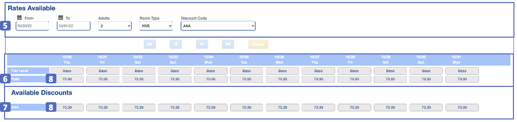 6. 6. 6. La tarifa del bastidor para el tipo de habitación y la fecha elegida sin ningún descuento aplicadose mostrará de forma predeterminada.Si las tasas de nivel de nivel están en su lugar, indicará el nivel de nivel en lugar de Base.