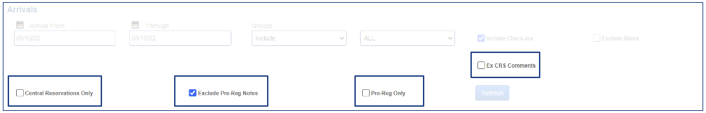 - incluyendo habitaciones ya registradas en habitaciones, que mostrarán no solo las llegadas restantes, sino todas las llegadas para el período seleccionado.