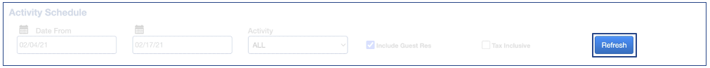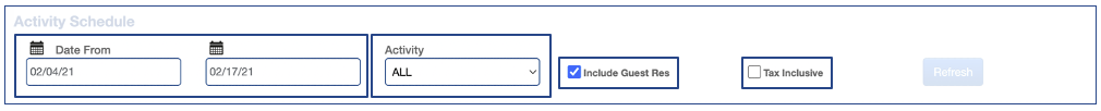 LosHorario de actividad report muestra cualquier horario de actividad a cualquier reserva para un día o días específicos.