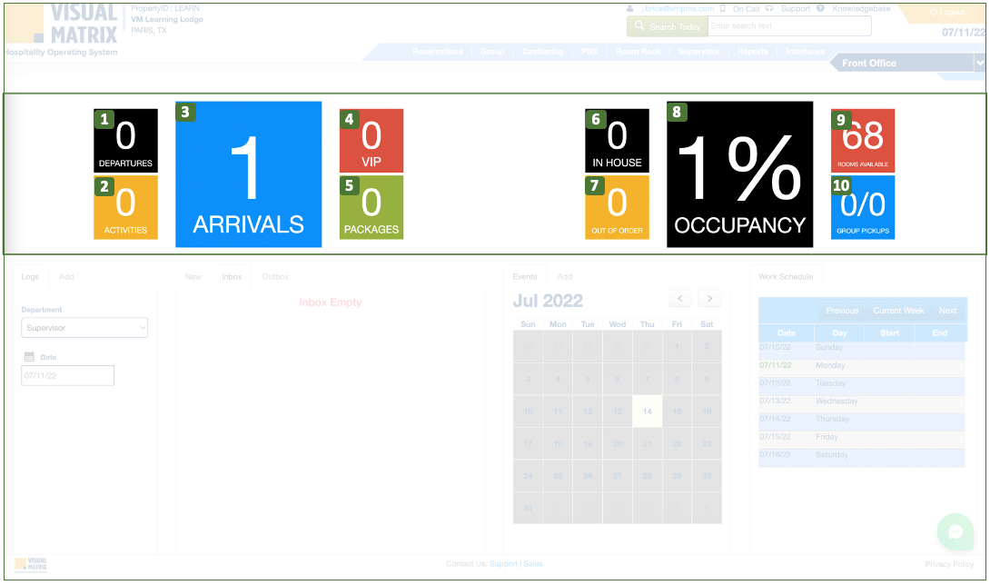 Las baldosas del panel son atajos para una visión más detallada de cada dato. Las estadísticas son:pronóstico, frente, por ejemplo, estadísticas en el bastidor de habitaciones, son tanto pronósticos como actuales.