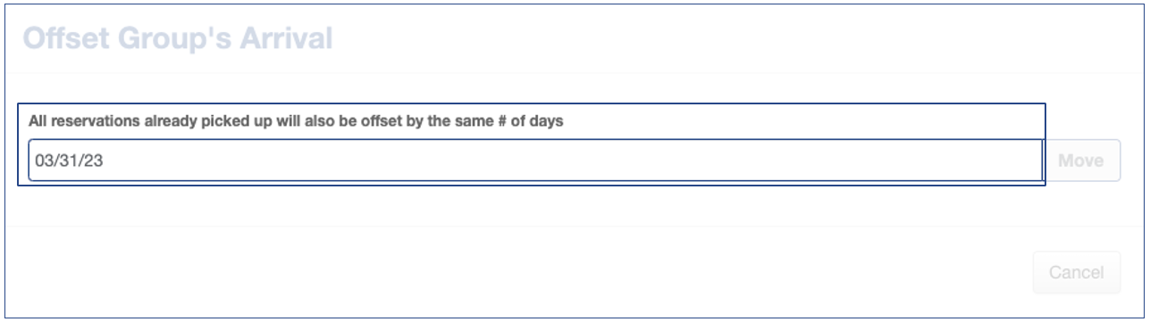 Si un grupo se mueve completo las fechas de estancia (no solo extendiéndose, sino que se mueve a otro momento), solo hay una manera de hacerlo. Si el proceso no se realiza de esa manera, ninguna reserva recogida no se moverá al mismo tiempo.Además, si está conectado a un Administrador de canales que también sincroniza grupos, no usar el botón de movimiento creará discrepancias en el inventario.