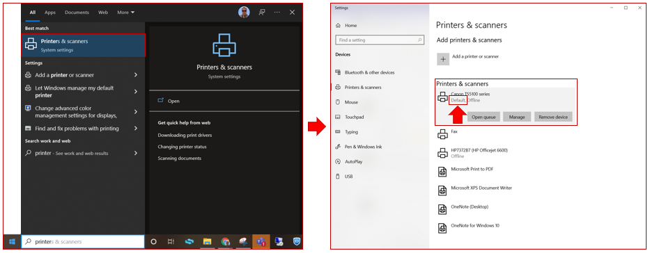 Desde la búsqueda de Windows: Impresoras y escáneres.