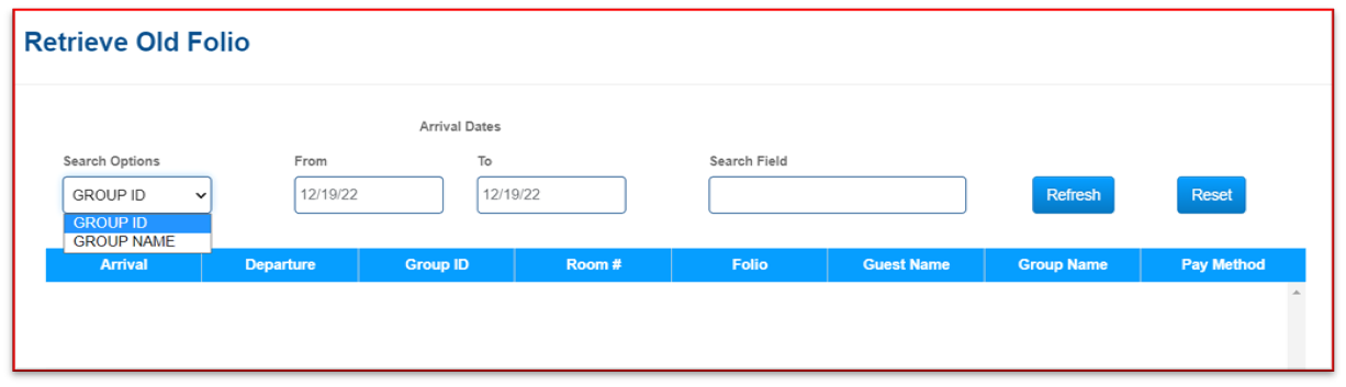 Camino:Front Office > Cajero > Cuenta de Invitado 1. 1. 1. SeleccioneRecuperar el viejo foliodesde el menú de la caja de herramientas en la parte superior derecha. 2. 2. 2. 2. Utilice las opciones disponibles para reducir su búsqueda: por libro mayor ...