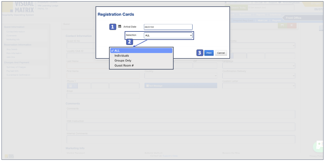 3. 3. 3. 3. Haga clic en Imprimirpara imprimir su selección yCancelarpara cerrar la casilla Tarjetas de registro si no se necesita impresión.