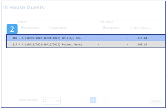 2. 2. 2. 2. Localice y haga clic en el folio que se necesite. Una parte invitada de una reserva de grupo tendrá el nombre del grupo junto al suyo.